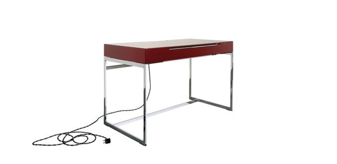 Als Kollektion ausdrucksstarker Solitärmöbel bietet mell auch einen eleganten Sekretär. Alles aus einem Guss und das gleich zweifach: Auf den einmaligen, fugenlos gearbeiteten Gestellen scheint das Schubkasten-Modul mit mühelos verschiebbarer Platte und perfekt integriertem Kabelmanagement zu schweben. Der mell Sekretär besitzt eine eingebaute Elektrobox mit Strom- und USB-Anschluss sowie ein Textilkabel für den Anschluss bis zur Steckdose.