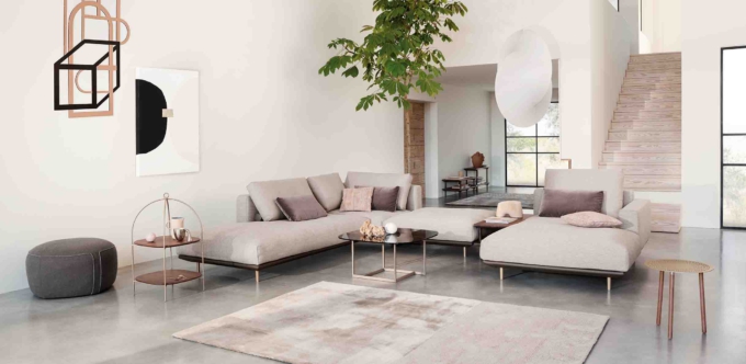 Das modulare Sofaprogramm Rolf Benz ALMA umfasst 2 Sitzhöhen, 3 Fußausführungen und besteht aus Sitzelementen, die jeweils auf 4 Füßen stehen und daher flexibel koppelbar sind. Zusätzlich können durch anstellbare Couchtische und rückenlose Polsterbänke optische Durchbrüche und weitere spannende Kompositionen verwirklicht werden. Ein stilistisches Highlight sind die mit Holzknöpfen befestigten Lederbänder, die das Sofa umfassen und sich individuell auswählen lassen. Sie können zwischen hellgrauen Lederbändern mit Knöpfen in Eiche und anthrazitfarbenen Lederbändern mit Knöpfen in Nussbaum entscheiden. In der Ausführung ohne dieses Detail überzeugt Rolf Benz ALMA mit besonders schlichter Eleganz.